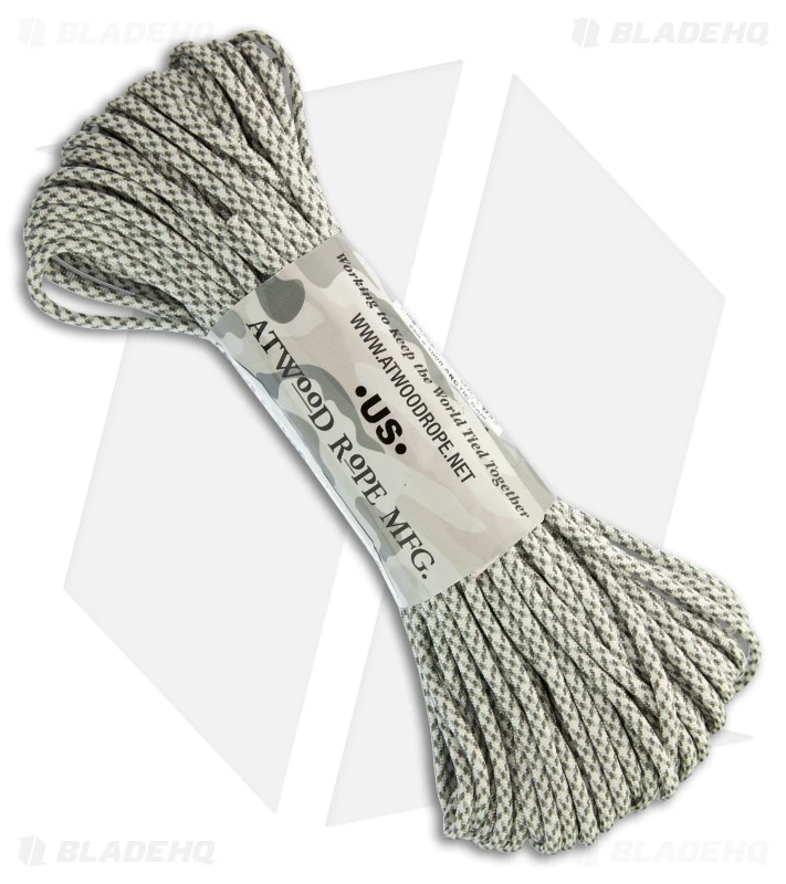 100 feet of Arctic Camo nylon paracord; ideal for a multitude of uses, surely you can think of a few. Made in the U.S.A.