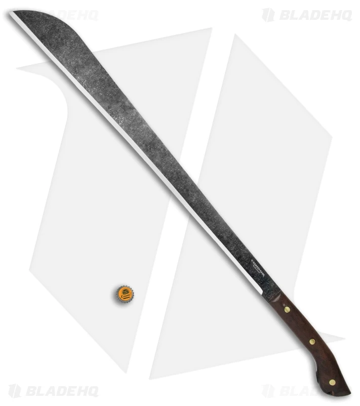 Meet the Condor Cojang Jungle Machete. This outdoor chopper is outfitted with a long, two-tone classic condor finished blade. The handle is made from walnut wood. The blade comes with a black leather sheath. Best the outdoors with this functional cutter.