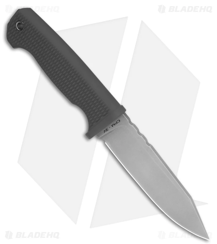 - Blade: Clip point CPM 3V steel blade with a stonewash finish.