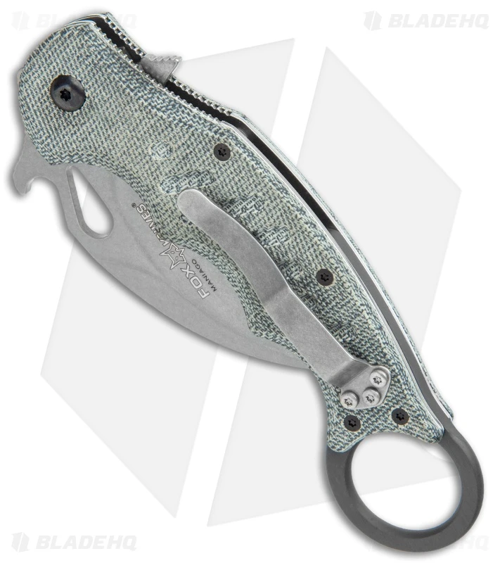 The Fox Knives Karambit is a tactical knife, through-and-through. The Karambit was orignially made in Indonesia for use in martial arts, but its genius design applies to numerous other applications. Armed with the Emerson Wave opener, the Fox Karambit can be quickly deployed , strong side or weak side, and put to use in any tight situation.
