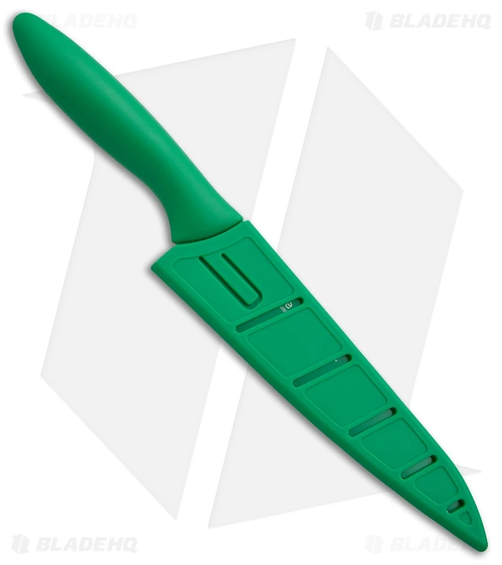 The bright colors on both blade and handle make Pure Komachi 2 knives from Kai Knives fun to use and add ye-catching color to your kitchen. The color-coding helps guard against cross-contamination of food. Each blade features high-carbon stainless steel with a hand-sharpened 16 degree cutting angled. Molded resin handles offer a comfortable and secure grip. These knives are dishwasher safe. However with all kitchen knives, we recommend hand washing to prolong the life of your blade as well as the colorful blade coating. Comes with a matching sheath for easy storage.