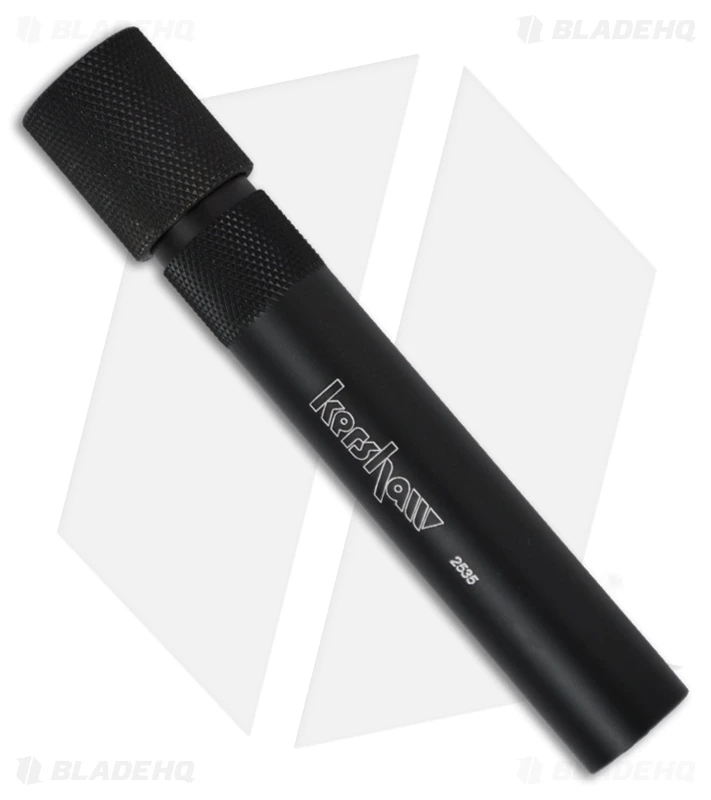Kershaw’s Ultra-Tek Blade Sharpener is impregnated with 600 grit diamond coating bonded with nickel plating to a light weight tube. The handle is lightweight aluminum with knurled sections for optimal grip. The handle tube and sharpening rod are threaded, so the handle also conceals the sharpening rod for safe carry and storage.