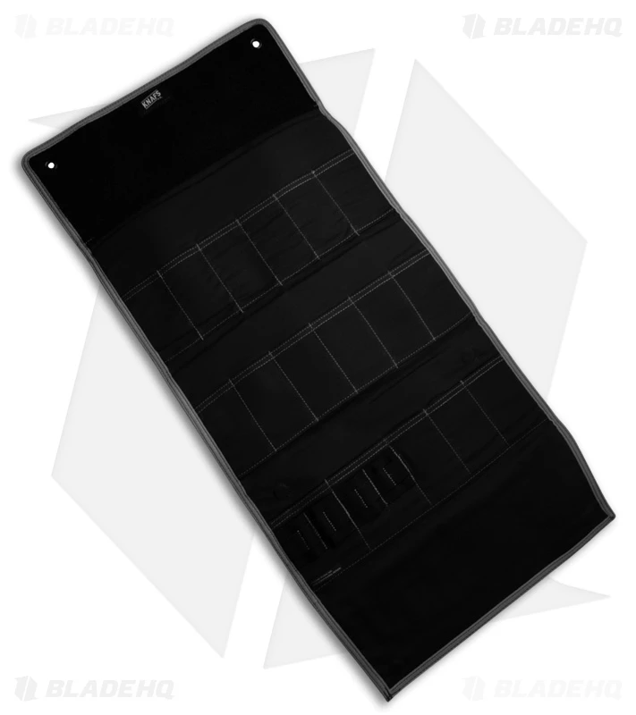 The Burrito Grande EDC storage roll case from KNAFS Co. keeps all your knives and accessories wrapped up nice and tight. More than just knives, the Burrito Grande can holster 8 pens or drivers as well as 4 other tools inside the nylon webbing at the bottom.