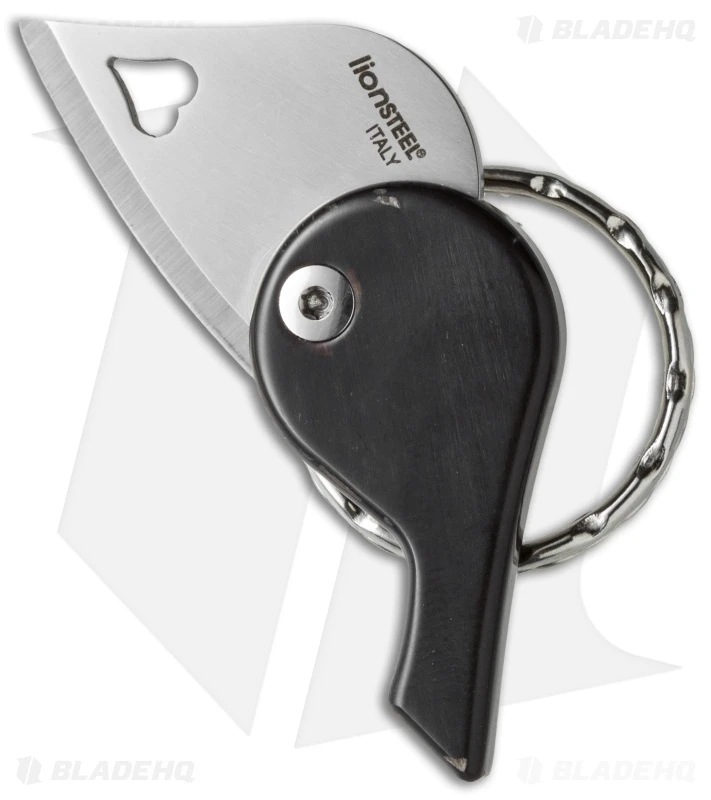 The Lionsteel Lionbeat is a mini folding knife designed by Sardinian knife maker Costantino Zanda. Based on the Sardinian tradition of Su Coru (The Heart), this knife has a sweet heart shape and a razor sharp chisel ground blade. This model is equipped with a dark horn handle and a satin finished blade made from AISI 440 stainless steel. Item includes a steel key ring for attaching to keys or your favorite lanyard.
