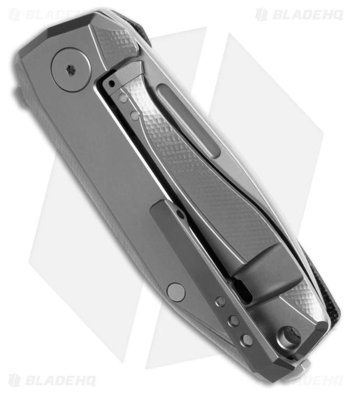 - Titanium frame lock with a steel lockbar insert.