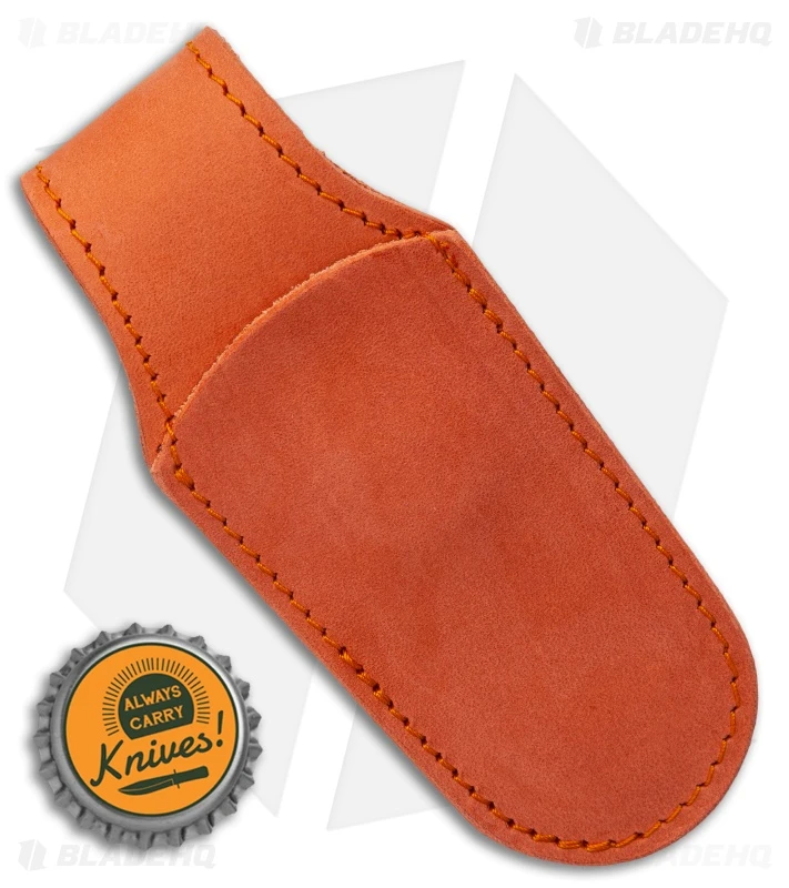 Looking for a slick and sophisticated method of carrying your pocket knife? This orange leather sheath from MKM is made from genuine leather and features a magnetic attachment system for belt carry or in-pocket carry. It fits most small folding knifes.