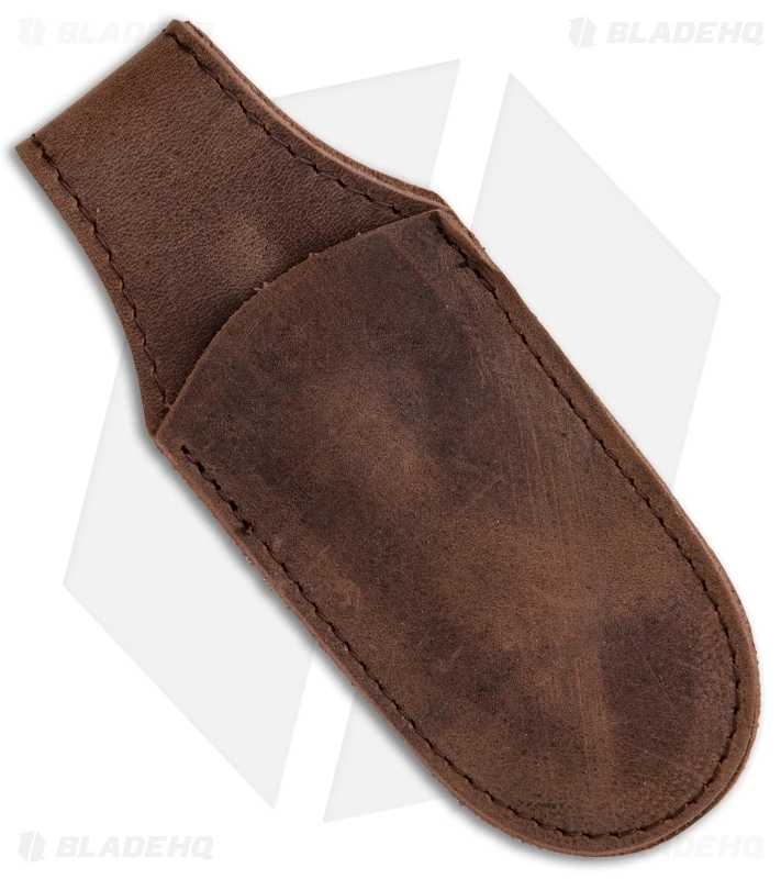Looking for a slick and sophisticated method of storing your pocket knife? This premium leather sheath features a magnetic tab so you can slip the sheath in your pocket and have the tab secure it and double duty as an easy way to access your knife.