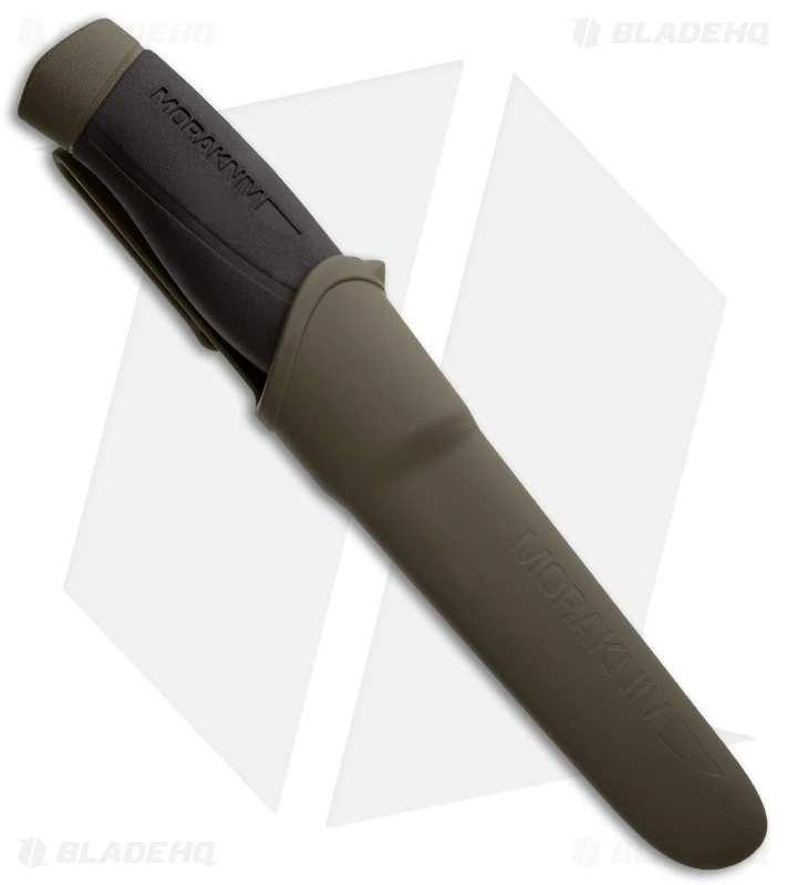 For batoning the knife needs great strength requirements: This Morakniv Heavy Duty MG features a thicker 3.2 mm carbon steel clip point blade with a 27° edge angle and scandi grind. The blunter edge angle gives for a maximum sharpness resistance. The handle features a a soft high friction grip.
