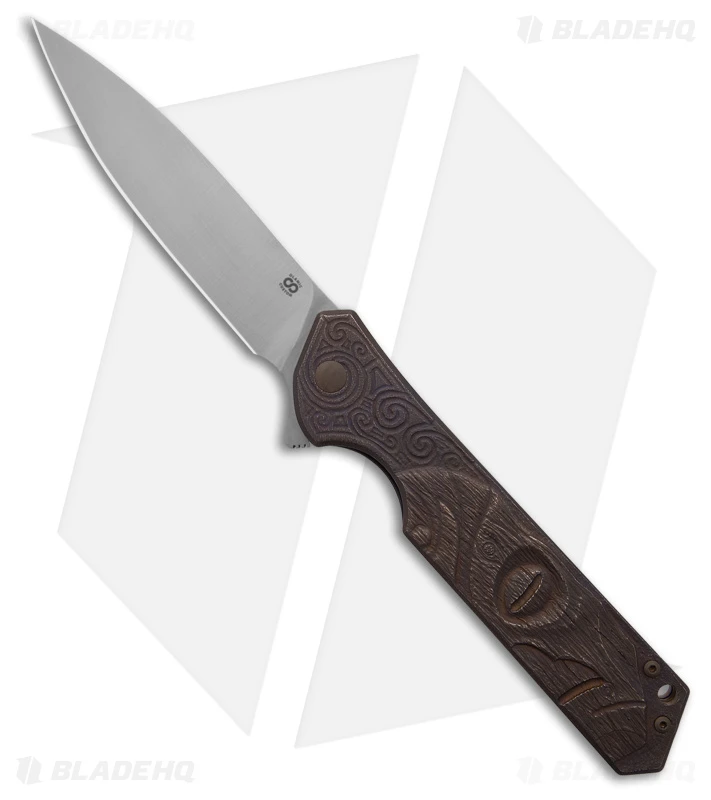 Olamic Cutlery Rainmaker Knife Hand Carved Mask Titanium(4.25″ Satin)