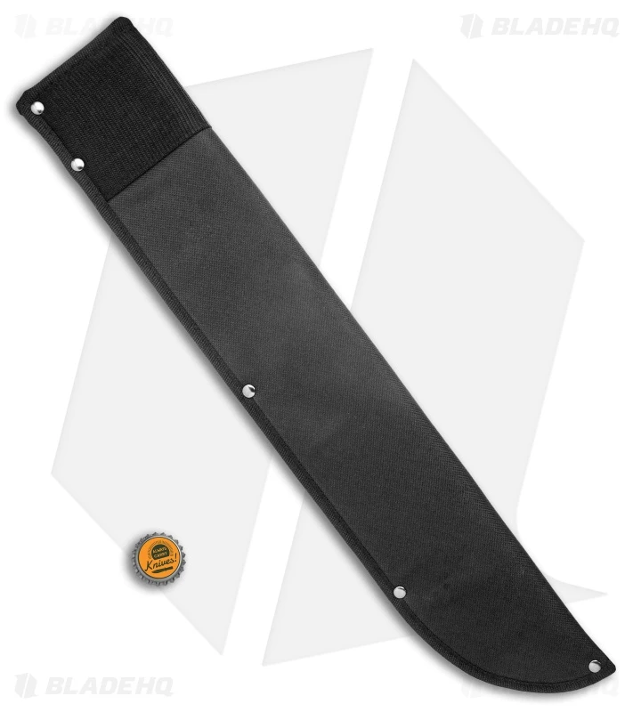 This 18″ machete sheath is durable and can withstand outdoor use being made of tough nylon. It’ll comfortably hold your 18″ machete and has a belt loop so you can carry hands free!