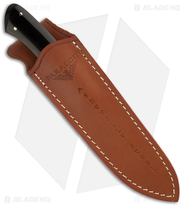 Fixed Knife. Full tang AUS-8 double ground steel from Seki of Japan. Black Micarta handles. Tommy Lee design. Brown leather sheath. Super ergonomic design is easy to hold and the Clip Point style blade is extremely sharp.