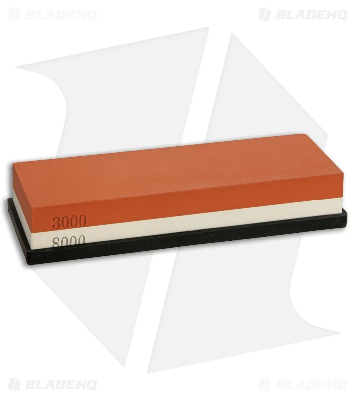 The Real Steel Japanese Whetstone Fine is a reliable sharpening stone for keeping your knives in their best shape. The two-sided Corundum stone measures 7.1″ x 2.4″ x 1.2″ with one sided having a grit of 3000 and the other 8000. It also includes two interchangeable non-slip silicone bases.