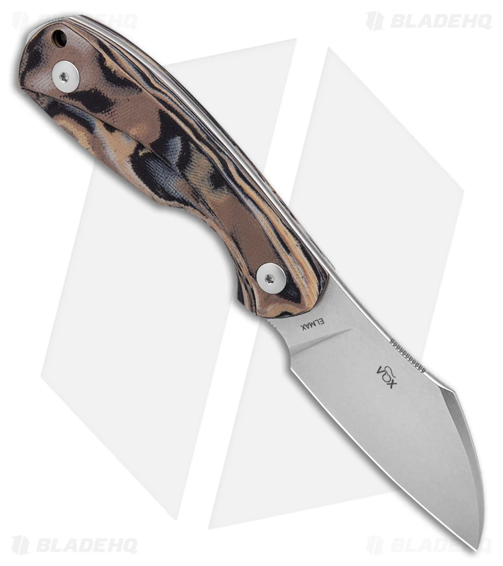 - Stonewashed sheepsfoot Elmax blade, with jimping and thumb ramp.