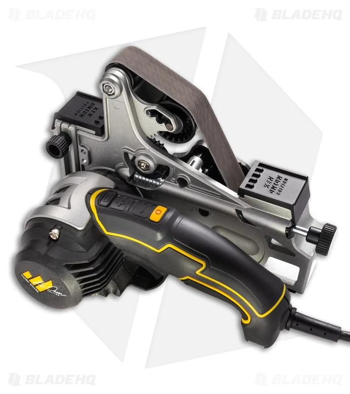 The folks at Work Sharp have outdone themselves with the updated, limited edition Ken Onion Elite MK2 Sharpener. We see improved performance and exceptional value all over this beauty, with Ken Onion’s fingerprints shining through with brilliant design upgrades. The sharpener has everything you could want in an all-in-one sharpener kit, including a wider belt, leather-lined guides, a new dial with scope click technology, more motor speed control, a rotatable cassette, a reference plate, the optional belt grinder attachment, and a comprehensive user manual. Once set up, sharpening any blade is as simple as a few quick strokes. It can easily handle monstrous sharpening chores while delicately managing more detailed jobs.